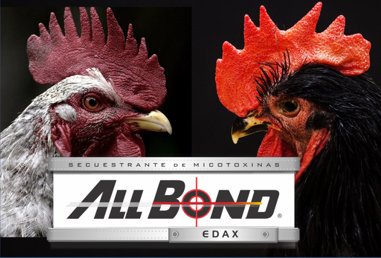 Diarreas Menor producción DON Inmunosupresión T2 Menor Consumo Eficiencia Alimenticia Cómo evitar las consecuencias por Micotoxinas en Gallos? Con ALL BOND EDAX by AllBond Conoce mas